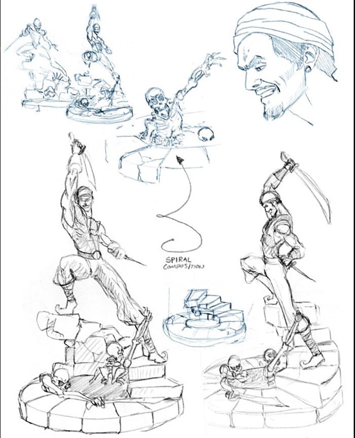 Our newest project to be sculpted by Jason "Spida" Adams was born from the 10th century writings chronicled as One Thousand and One Nights or simply called The Arabian Tales. To that we mixed a blend of master animator Ray Harryhausen and a dash of the 1947 film Sinbad the Sailor starring Douglas Fairbanks, Jr. We call it Sinbad the Sailor, One Of 1000 Nights.