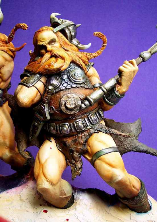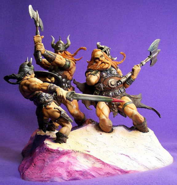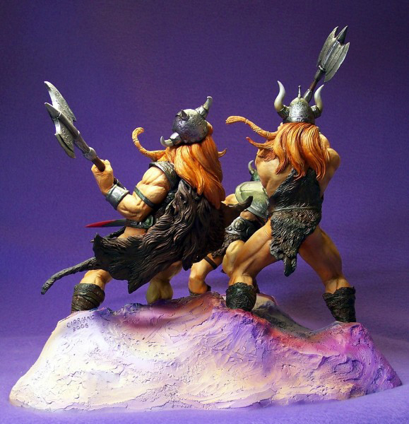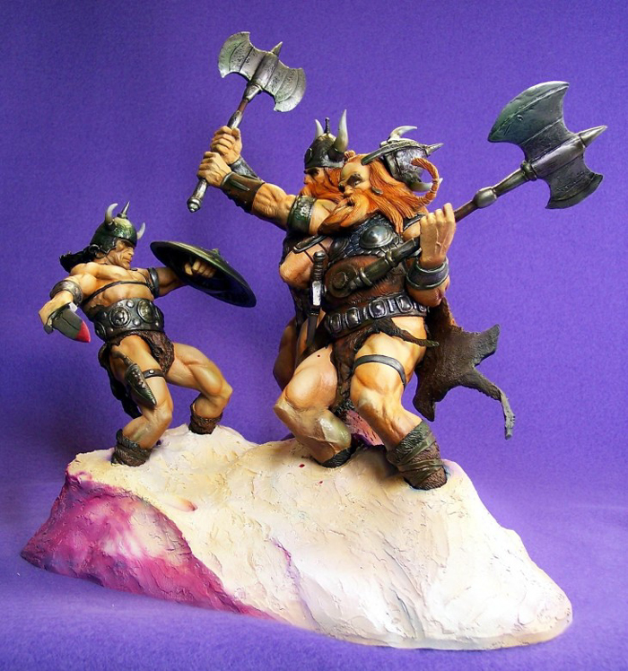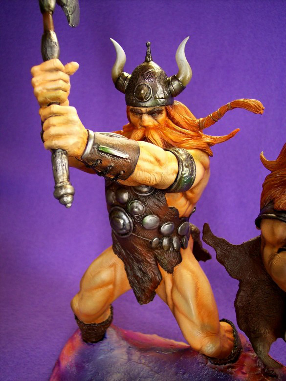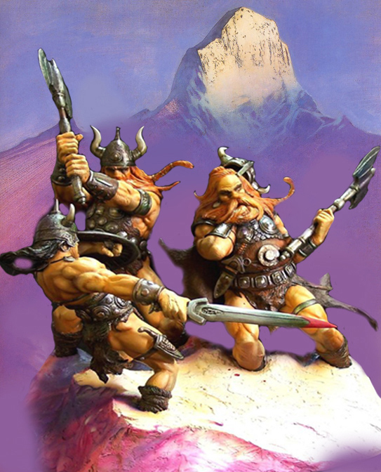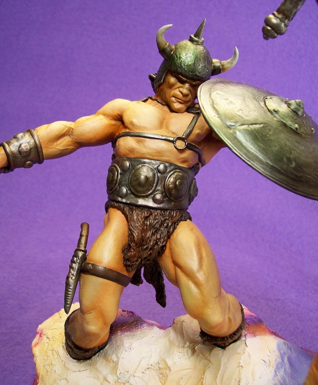 The above is the finished sculpture set in front of an appropriate backdrop which we are using for the box art packaging. Compare this marvelous statue with the original Frazetta painting below.